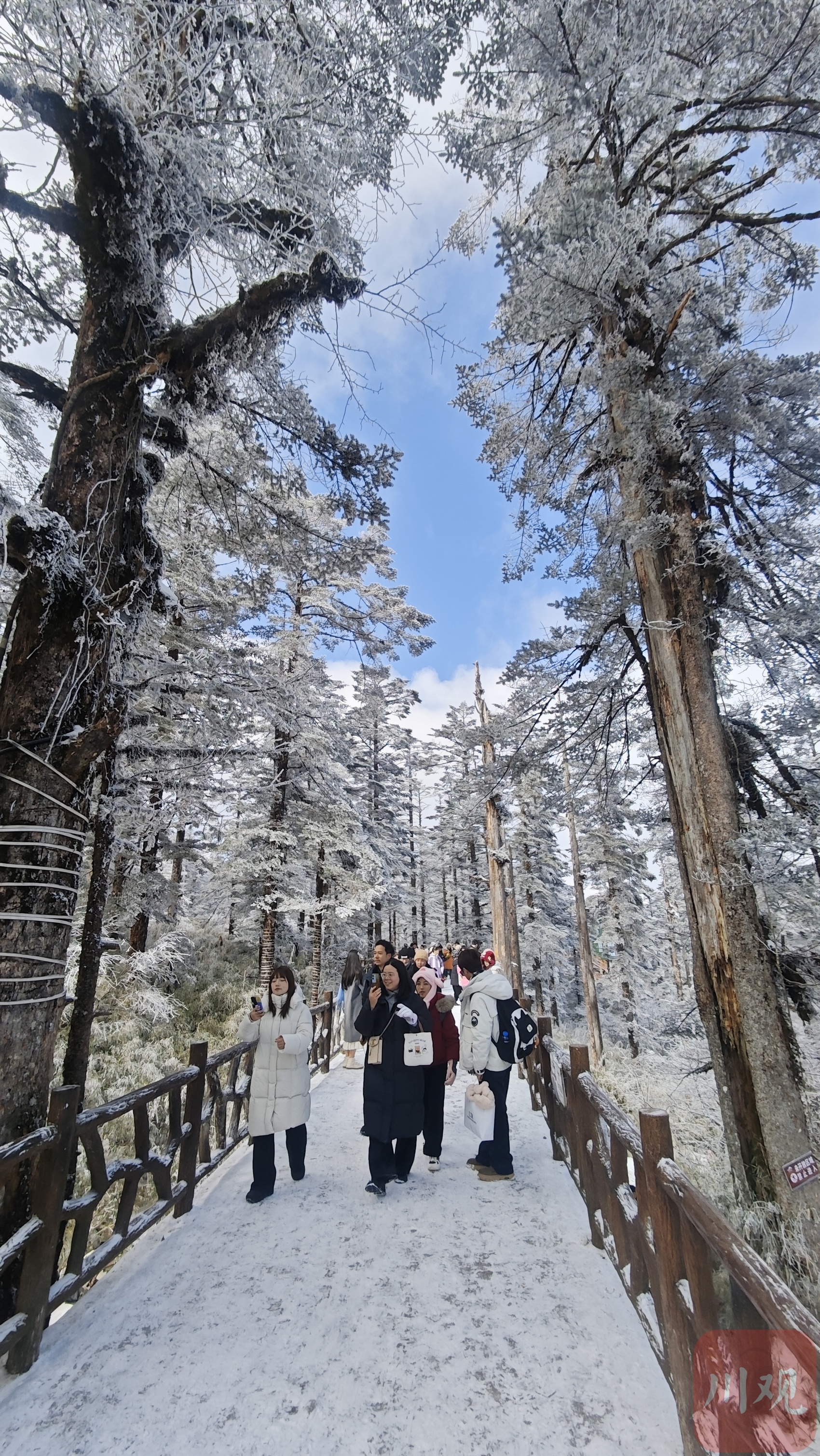 旅客在瓦屋山打卡雪景。