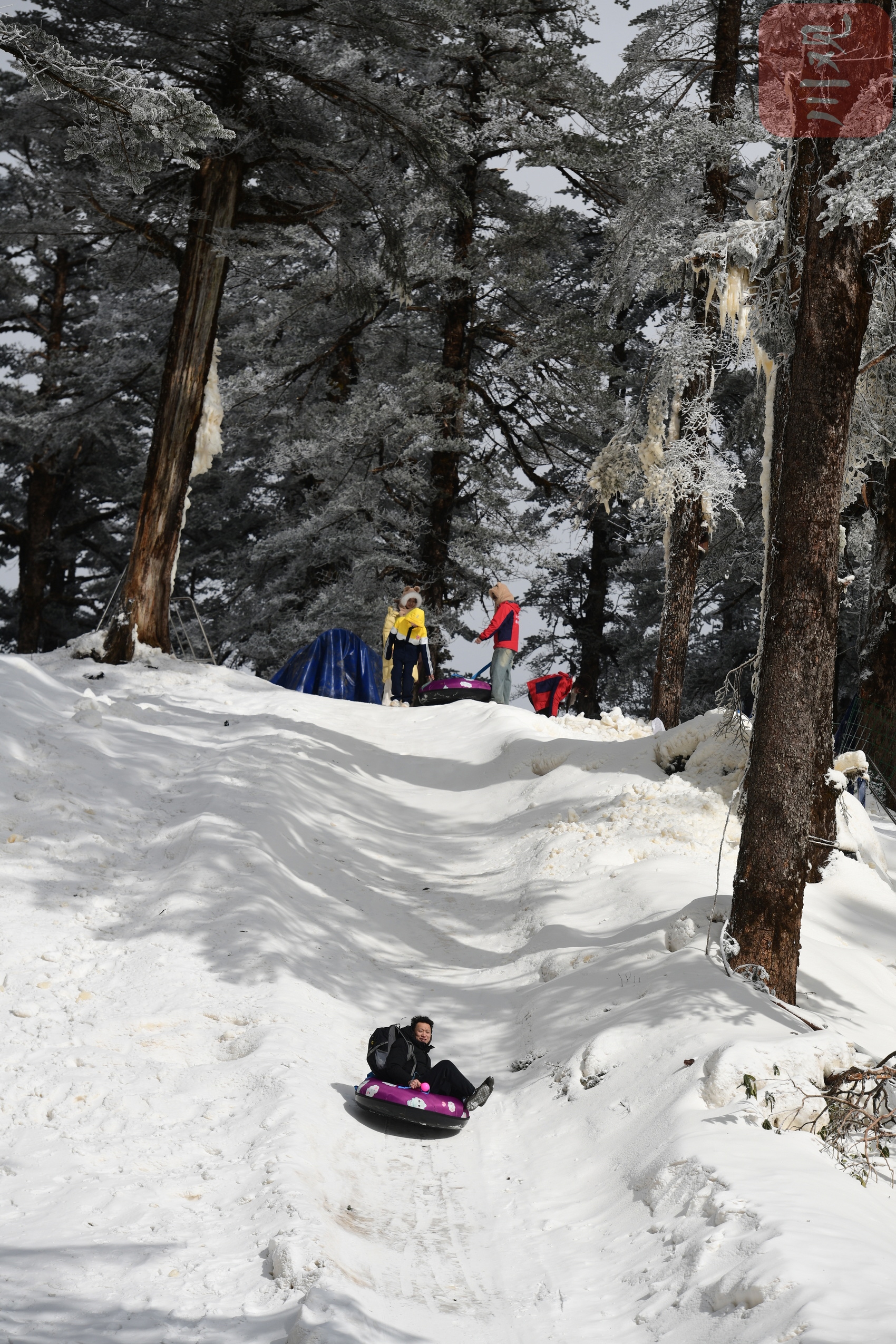 旅客在瓦屋山耍雪。