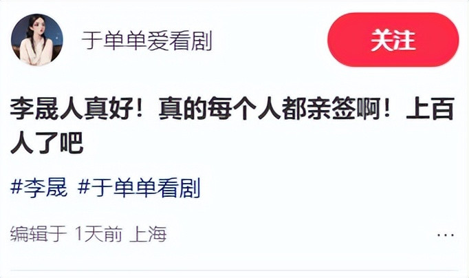 李晟在剧院上演后参与粉丝签名互动(SD才智),李佳航到场接她时未径直惊扰,而是普及音量连喊两声“配头”,听到李晟恢复后挥手鞠躬离开。